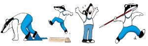 5-7-vuotiailla 150 metrin juoksu, pituushyppy ja pallonheitto